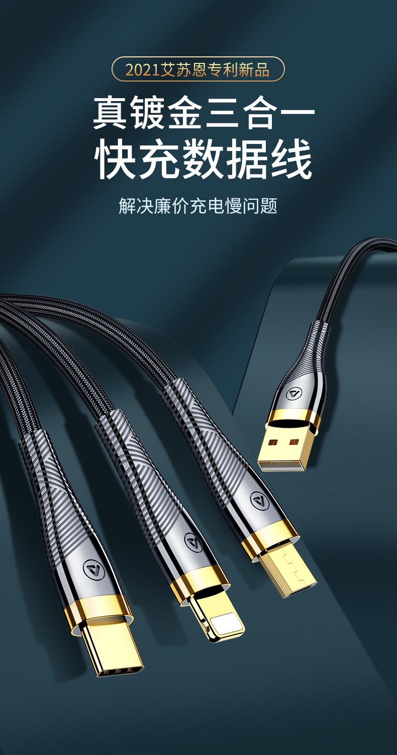 Кабель данных Трех -один, одна быстро зарядка с тремя заряженными тремя заряженными кабелями 5A Super -Car Multi -Heded, подходящая для Apple Philling и Andew Mobile Phone Three -Headed Multi -Cpurpose Function.