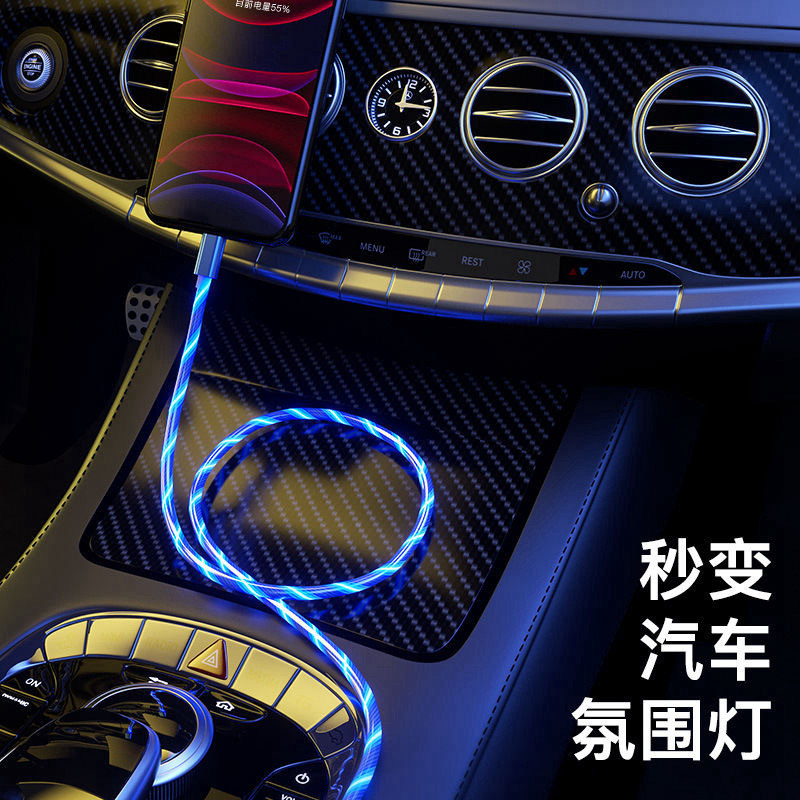 Кабель для зарядки стримера «один на три», подходящий для Apple, Huawei, Android typec, управляемый кабель для передачи данных, 2 метра, быстрая зарядка «три в одном», интернет-знаменитость, новый шатер Douyin для iPhone, автомобиль Xiaomi, красочный свет