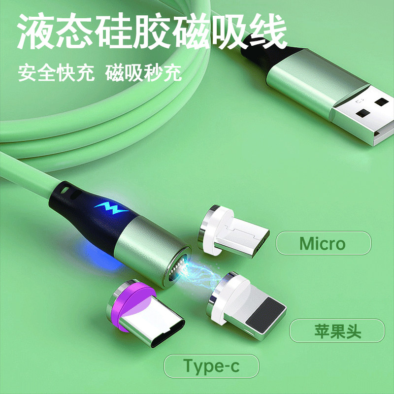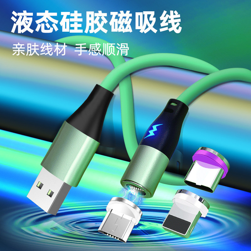 Магнитный кабельный кабель Жидкий силиконовый зарядный проволока Три -в одном 5A подходит для супер быстрой зарядки Huawei Apple Apple, один перетаскивание, еще три головы общая быстрая зарядка