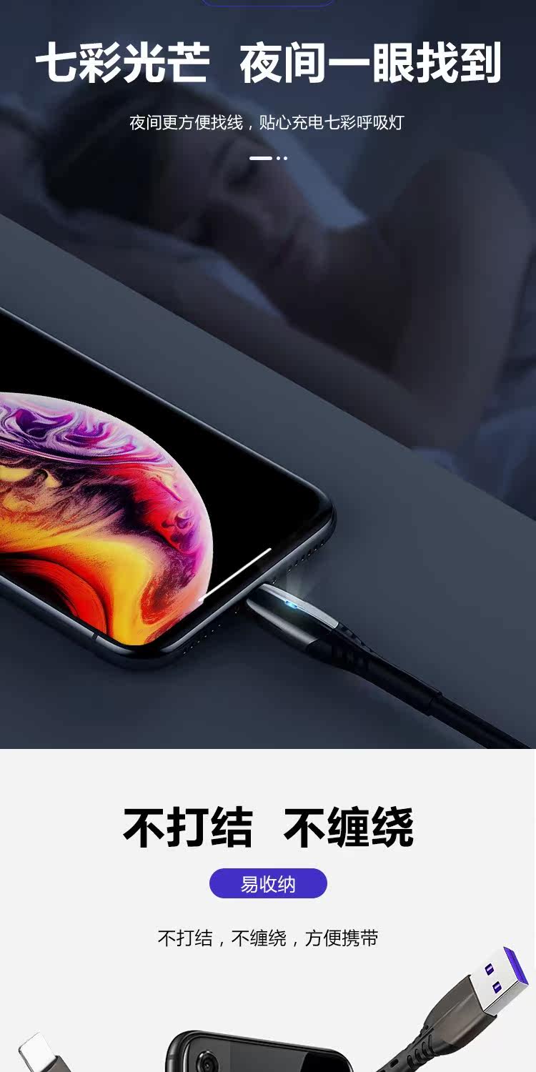 Кабель для передачи данных с сердечником Hehe подходит для Apple iphone8/xr/11/12proMax, плетеный зарядный кабель с дыхательным светом