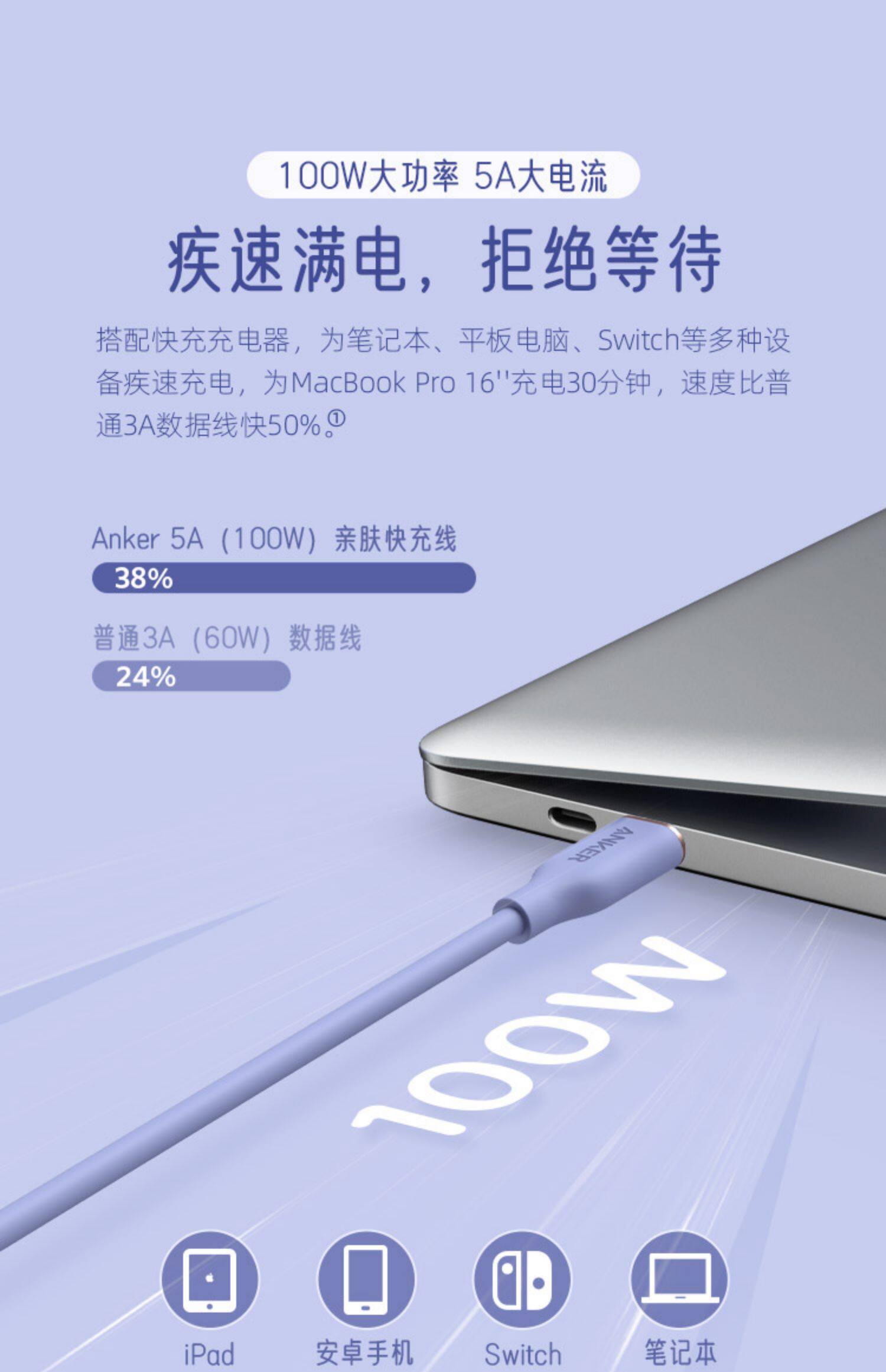 Anker Anke Silicon Skin 5a Android Data Line 100 Вт двойной ноутбук-ноутбук мобильный телефон