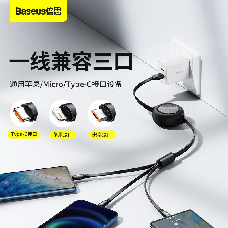 Better Sanhe One Line Data Data 6a 66 Вт. Один перетаскивание три подходит для Apple Huawei Mate40proiphone14/13 Автомобильная флэш-зарядка типа C Android P50 Super Fast Line Line