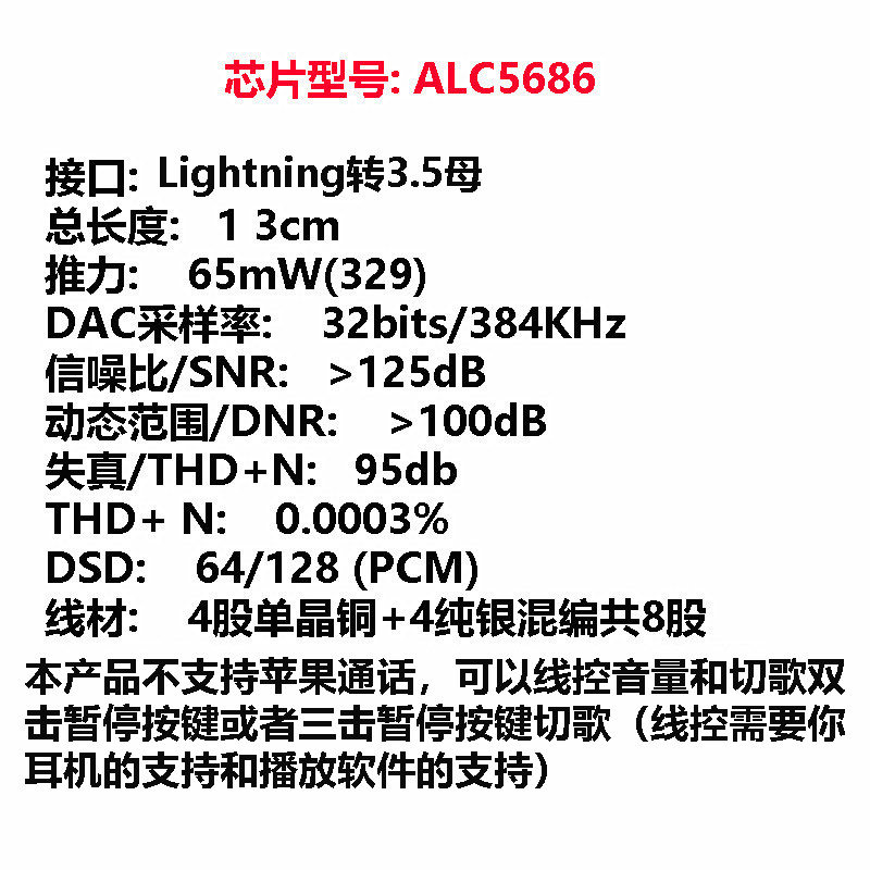 Apple Lightning to 3,5 -мм наушники аудио -аудио -турбин соединитель разъек Отопал декодирование ALC5686 Маленький хвост
