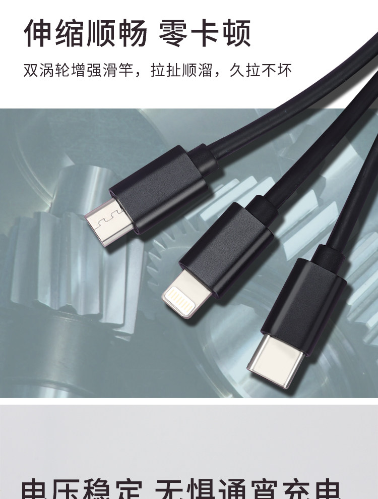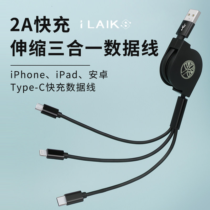 Ilaiks Tri -In -Один настоящий телескопический кабель данных, подходящий для Apple 12tepyc Fast Charging Mafi Carplay Carplay