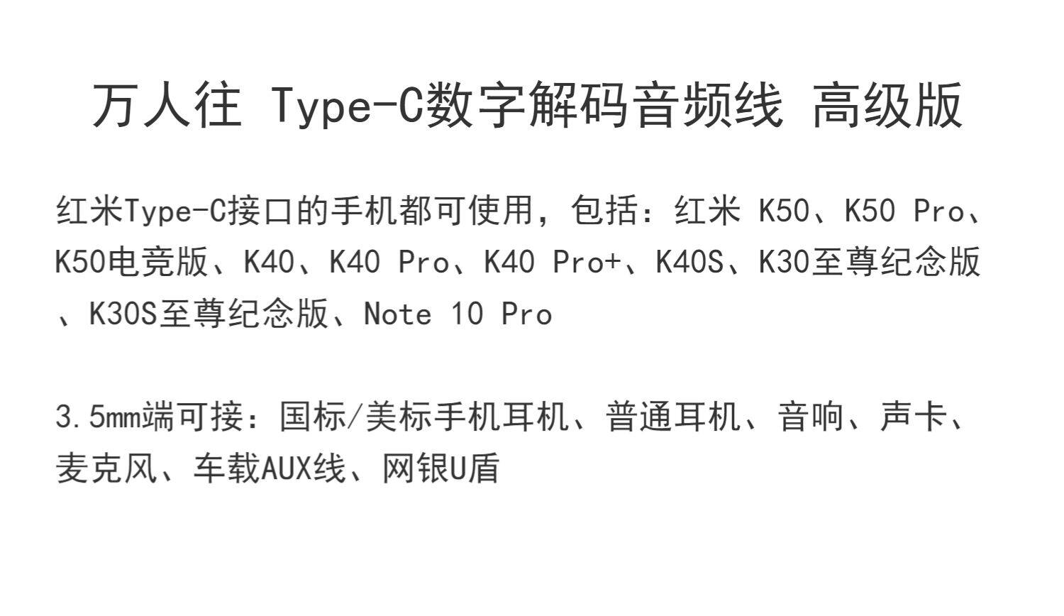Применимо к Redmi K50 Hearset Rotor K40 Pro+Mobile Phone Conversion Head Head K40S Audio Cable K30S Rotor Note10pro с высоким DAC Converter Digital Decoding