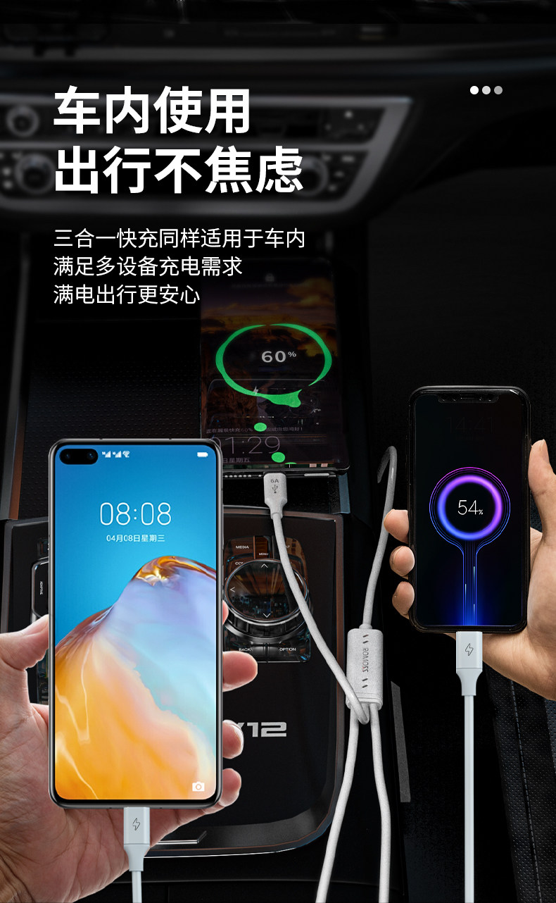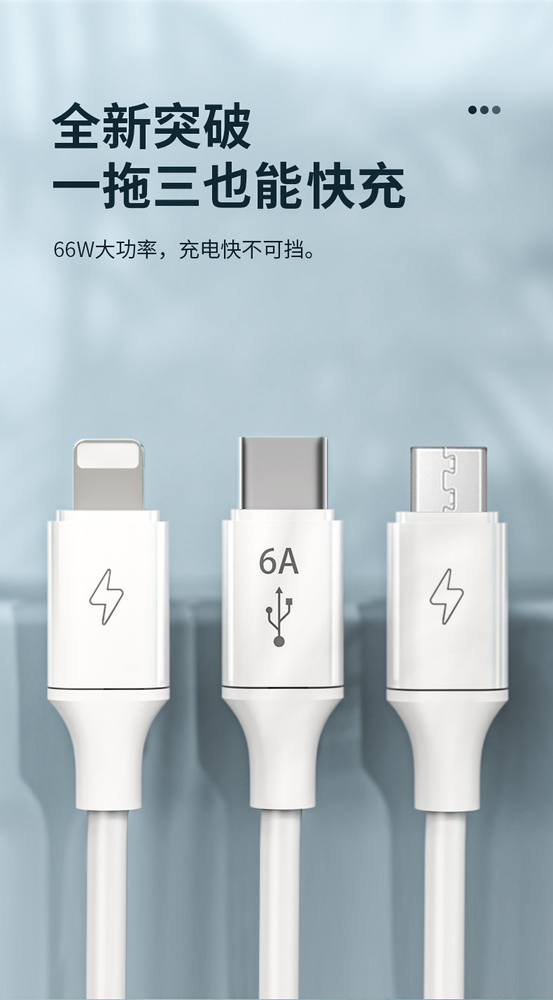 Кабель для передачи данных Romans «три в одном», 66 Вт, сверхбыстрая зарядка от одного до трех, 5 А, подходит для Huawei, Apple, iPhone13, зарядный кабель, флеш-зарядка, автомобиль, 6 А, Android Typec, универсальный, подлинный, с тремя головками