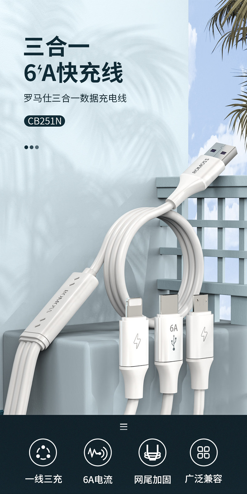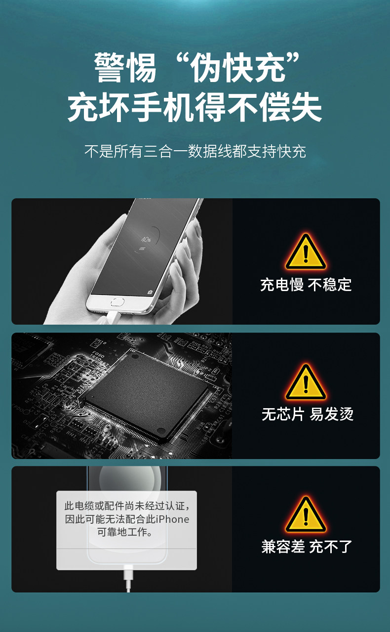 - 1,2 метра [Apple+Type-C+Android] 6A безопасная быстрая зарядка