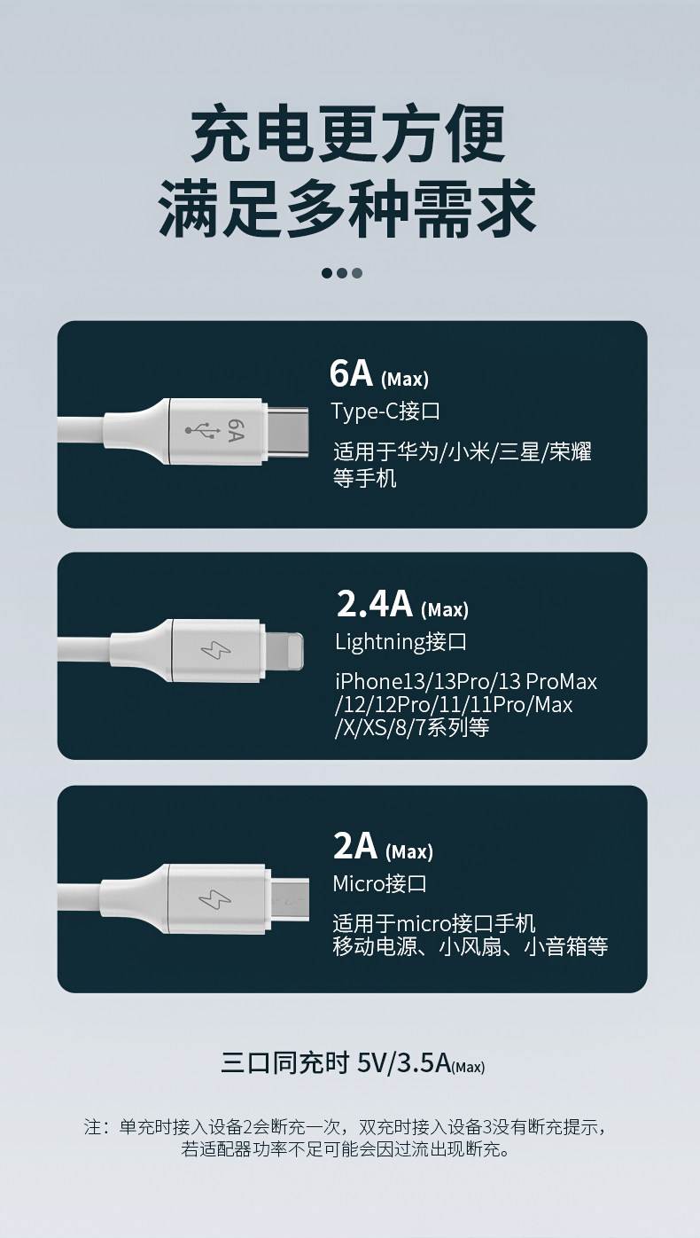 - 1,8 метра [Apple+Type-C+Android] 6A Безопасная быстрая зарядка