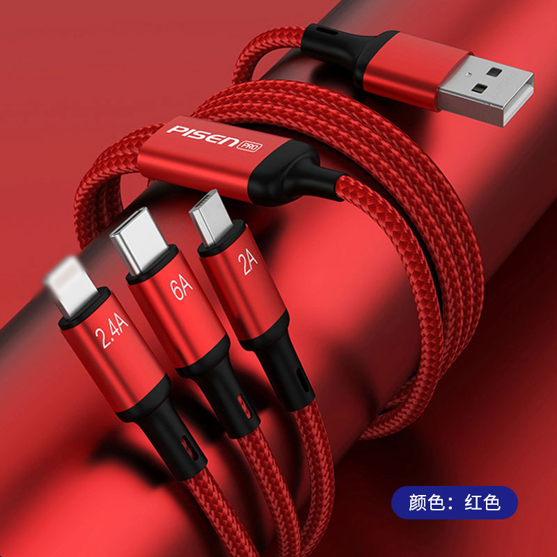 Pinsheng Pro флэш-зарядка «три в одном», плетеный кабель для передачи данных, 66 Вт, кабель для быстрой зарядки, подходит для Apple и Android, подходит для зарядного порта mate60 50 30 40 20 Type-C