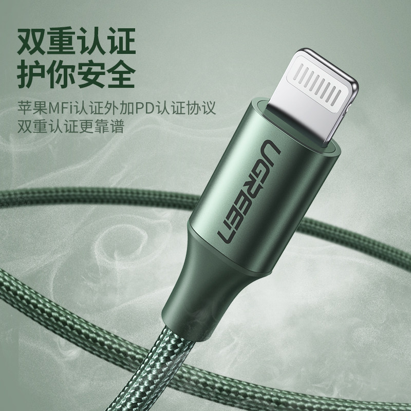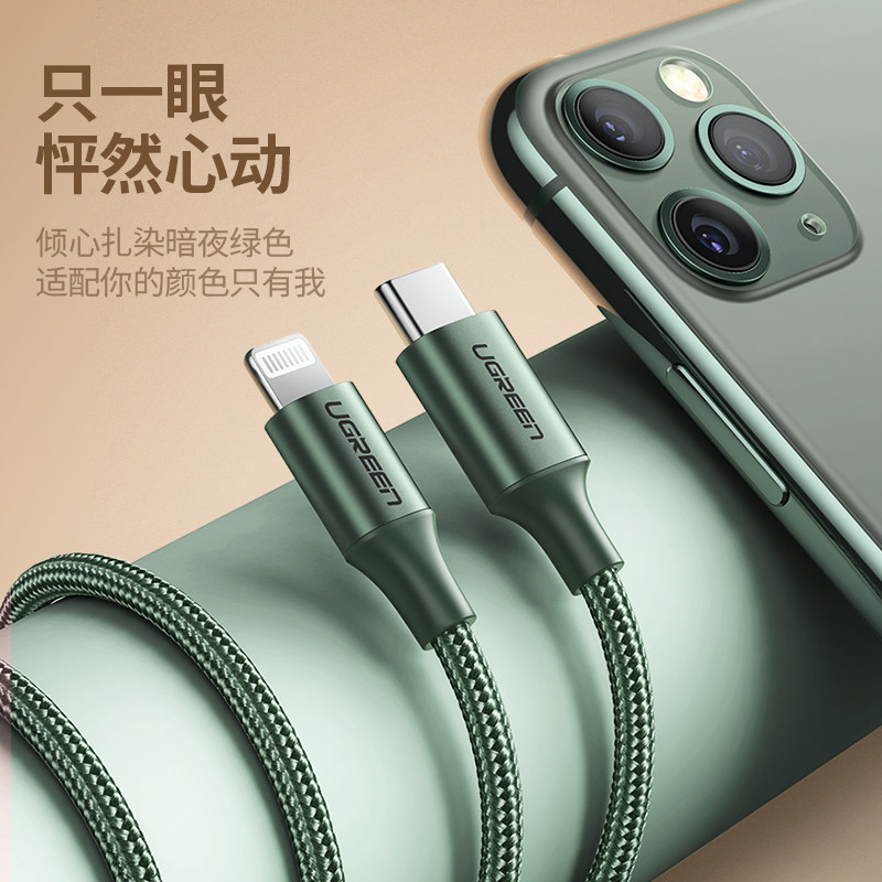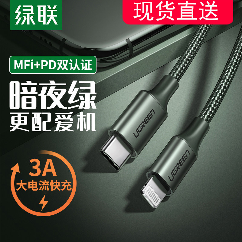 Green Union Type-C To Lightning Smart Data Cable, подходящий для Apple 12/XR Mobile Phone PD Кабель быстрого зарядки