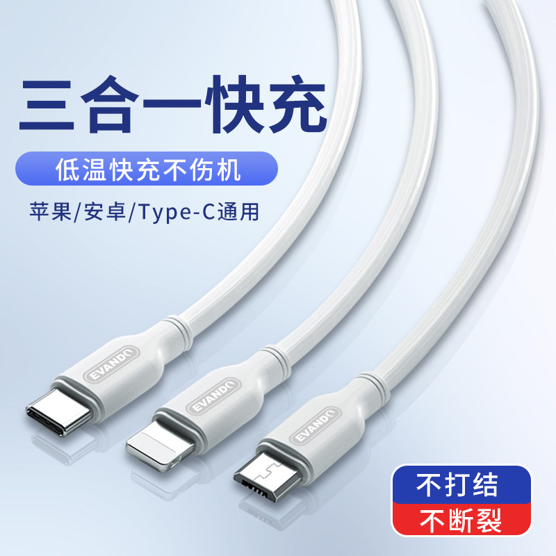 Кабель данных Трехно -в одном зарядном кабеле Один перетаскивание 3 6A Сверхпроницаемая линия линии переносной тройной нагрузки автомобиля Многофункциональный флэш -заряд