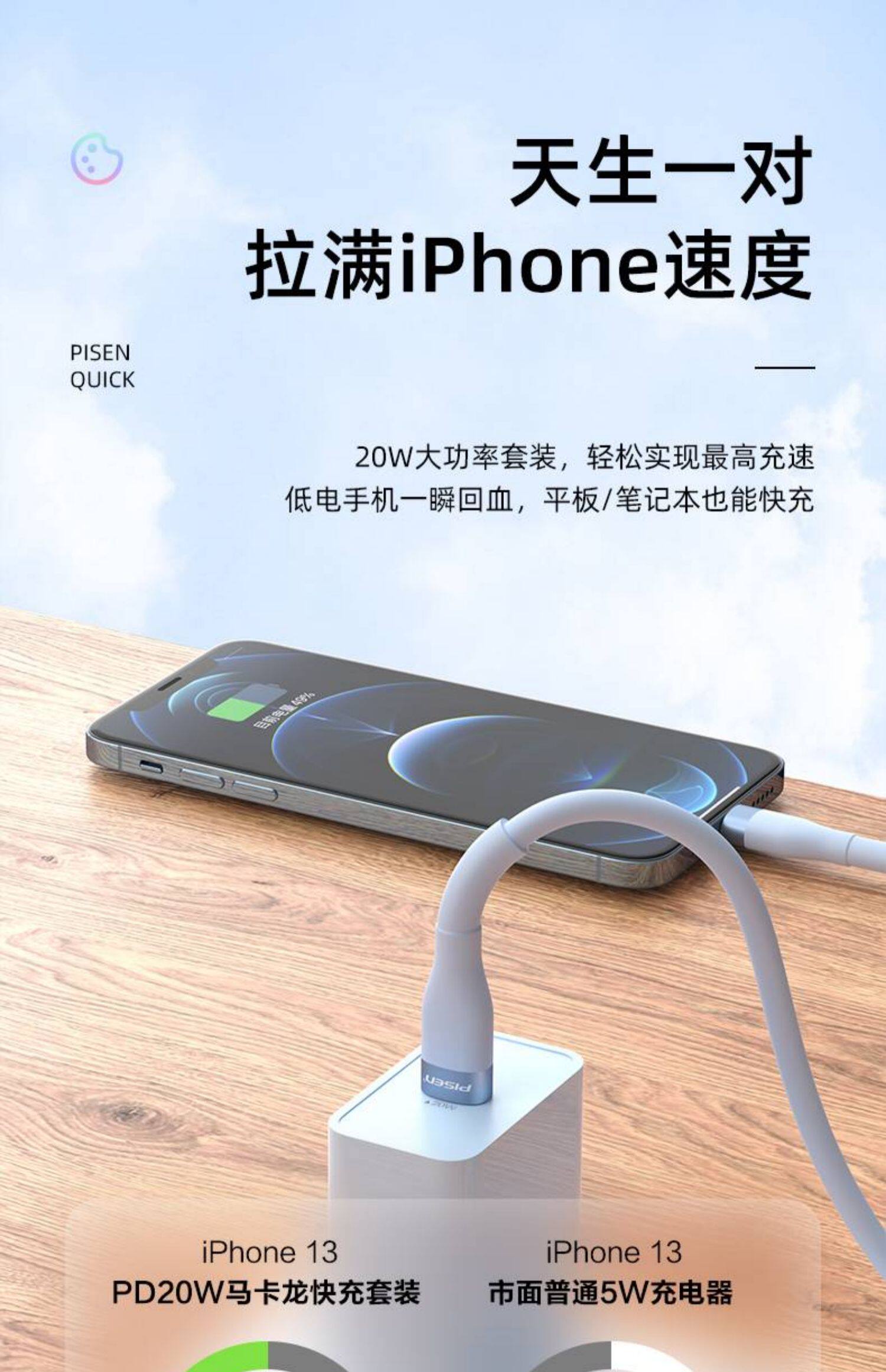 - [Небо синий] 1,2 метра PD Линия быстрой зарядки ★ Жидкий силикон ★ Низкая температура без причинения вреда машиной
