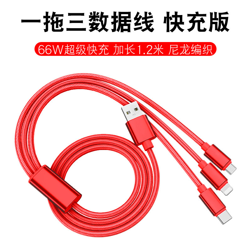- 1,2 метра/2A 丨 Red A01 One Trang Three 丨 Android+Apple+Type-C