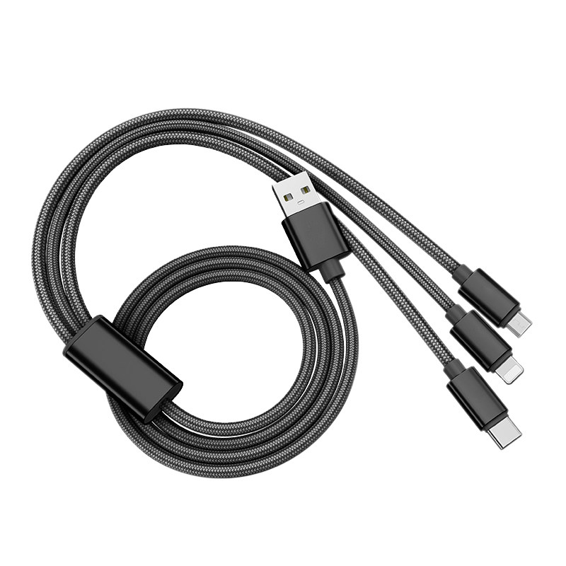 - 1,2 метра/2A 丨 Черный A01 Один перетаскивание три 丨 Android+Apple+Type-C