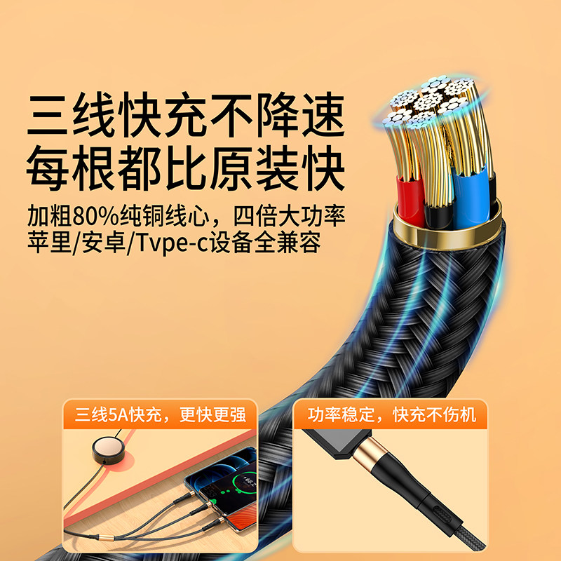 Apple, huawei, телескопический зарядный кабель, совместимый комплект, универсальный мобильный телефон, 66W, «три в одном», iphone, андроид