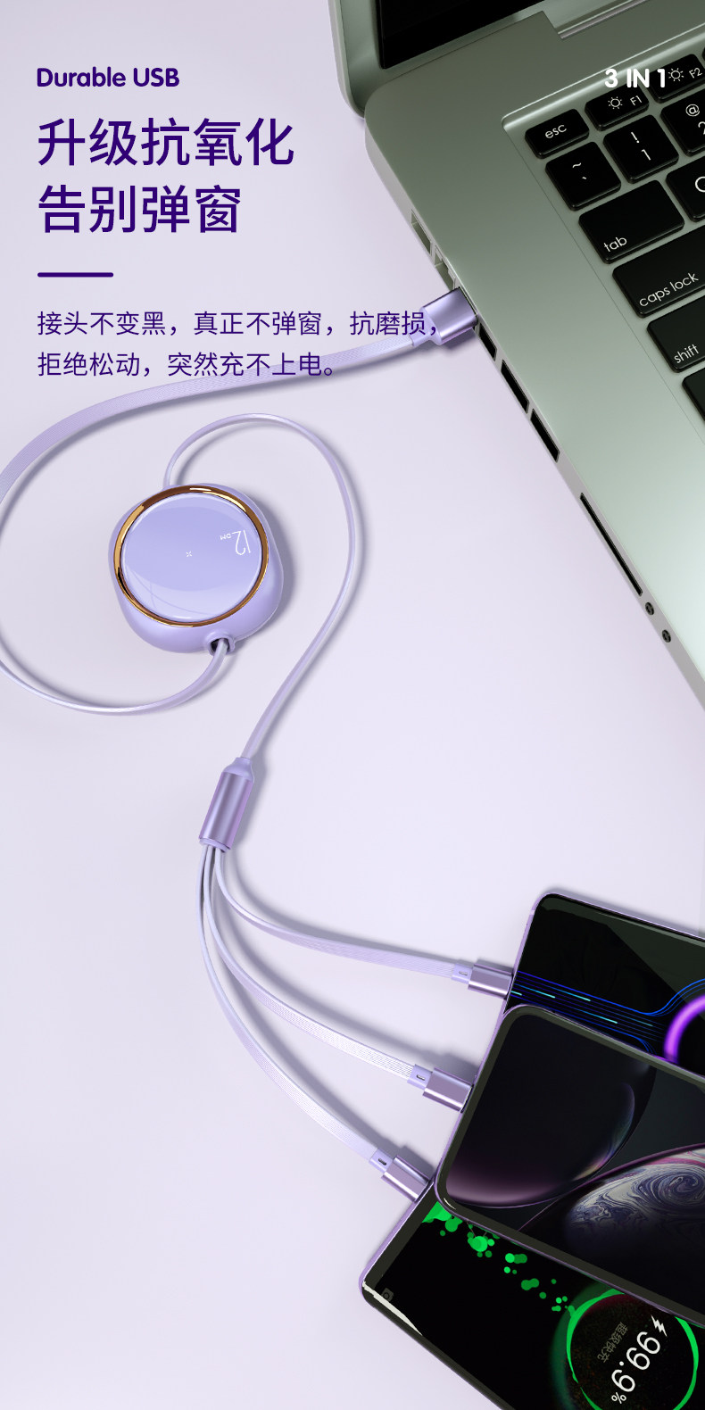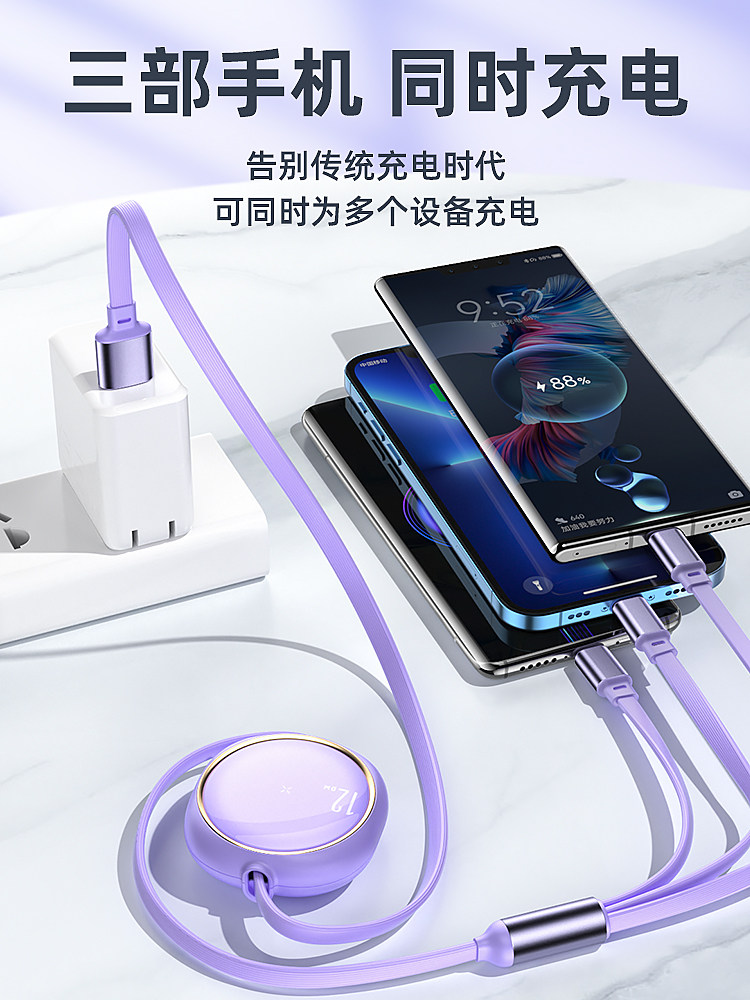 Apple, зарядный кабель, совместимый мобильный телефон, 100W, «три в одном»