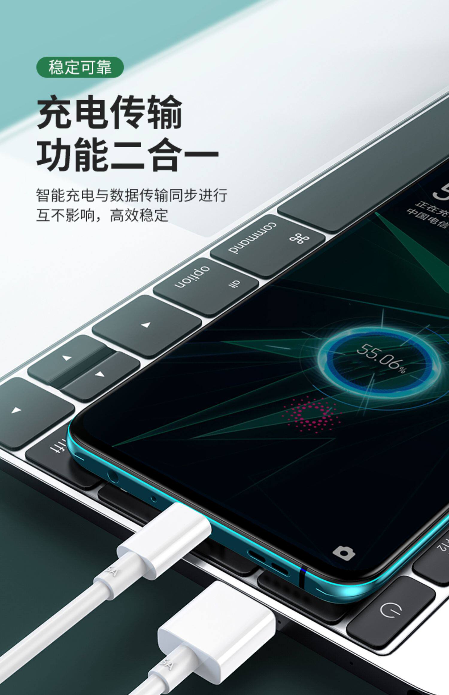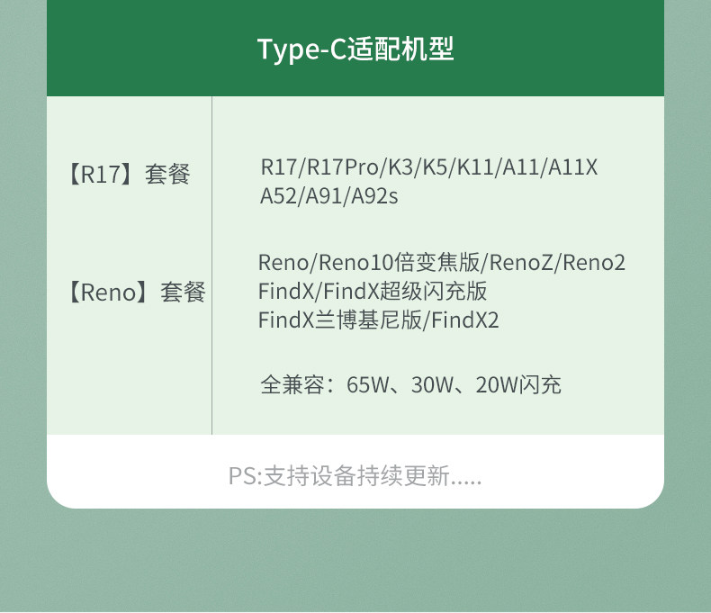 - 5A флэш-зарядка 【Интерфейс Type-C/одна установка】 2m