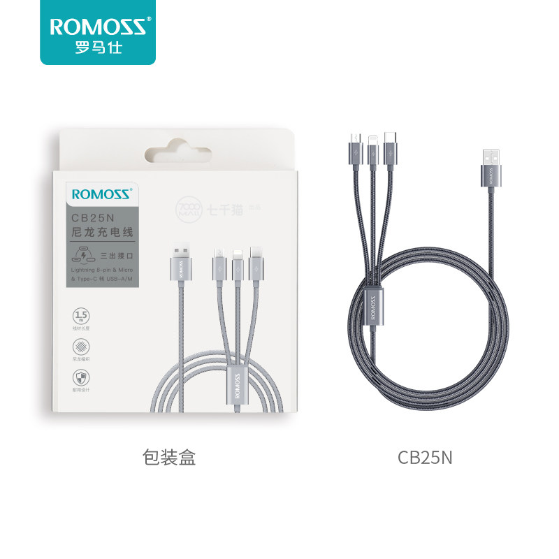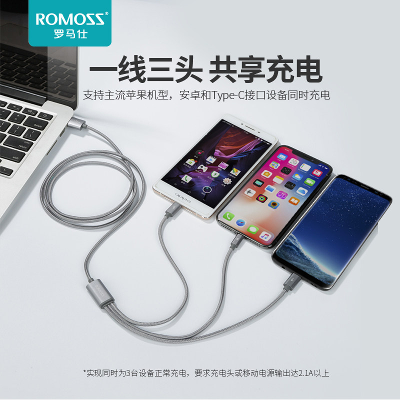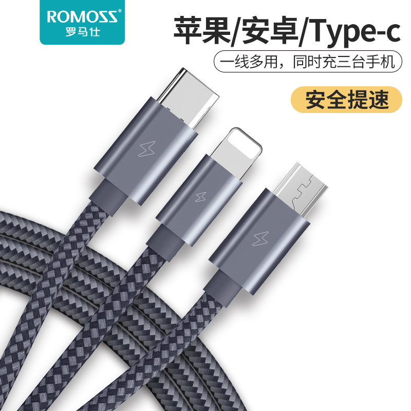 Romans One Cranging Three-In-One Data Зарядка кабеля Type-C Universal Android для Xiaomi Huawei Oppo Apple X