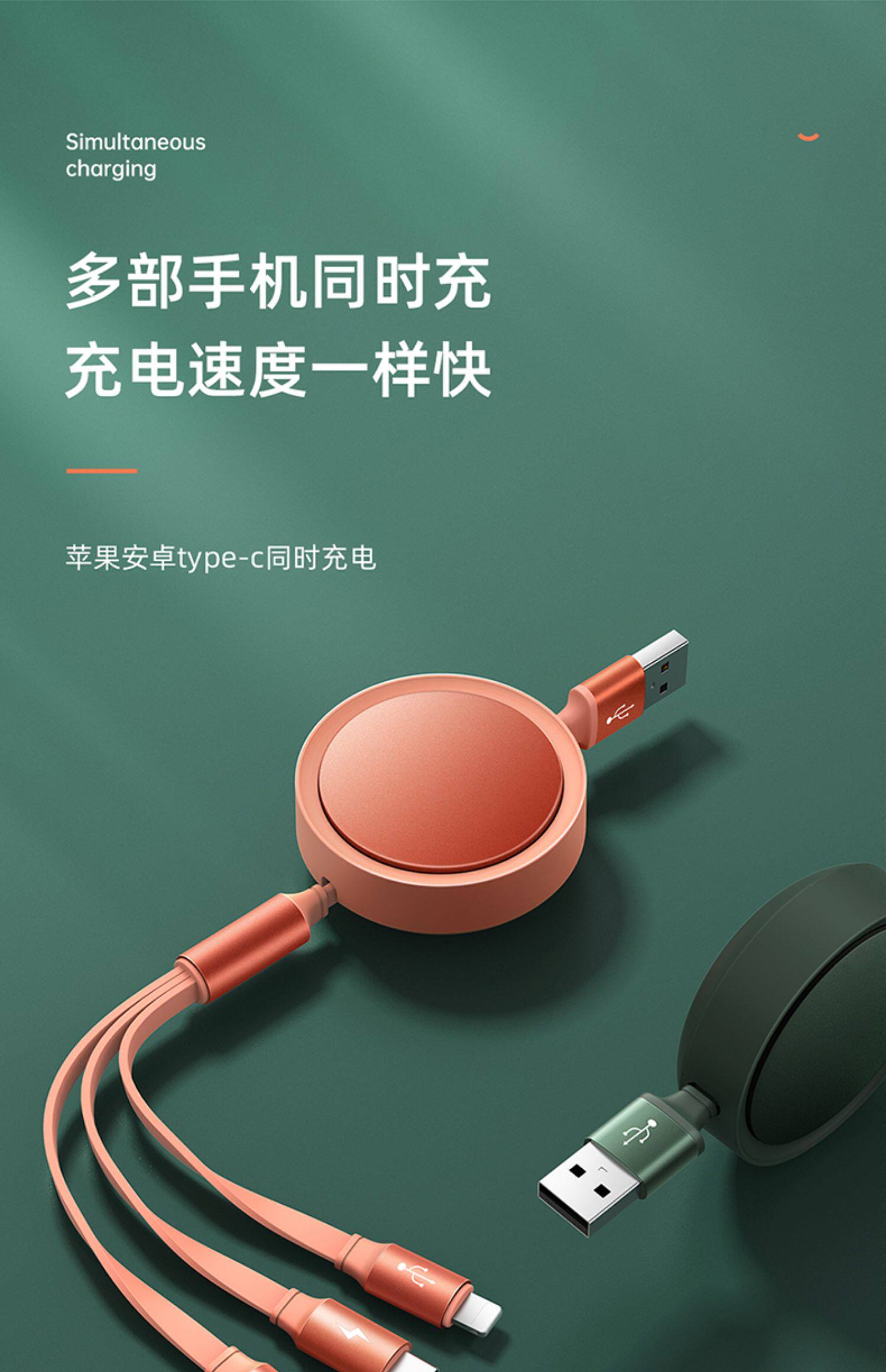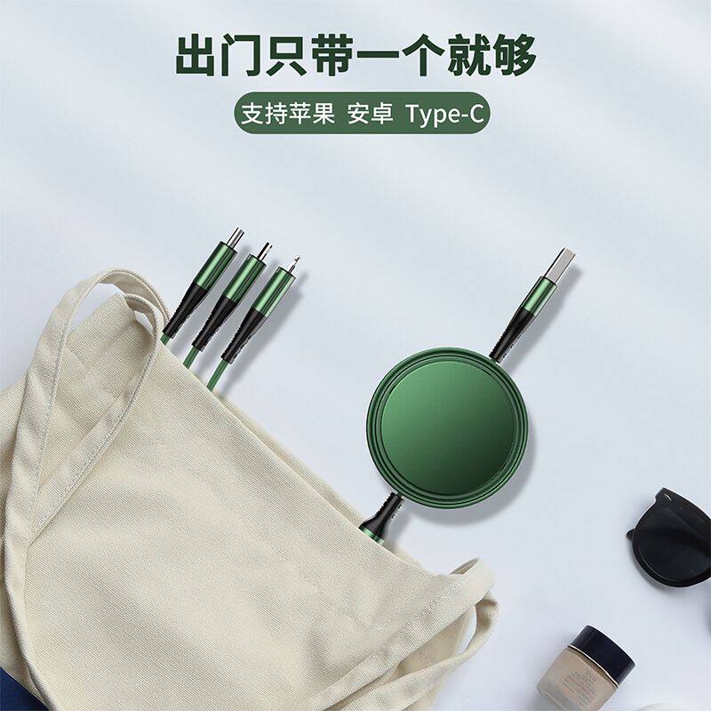 Apple, huawei, металлический телескопический совместимый зарядный кабель, портативный мобильный телефон, алюминиевый сплав, «три в одном», андроид