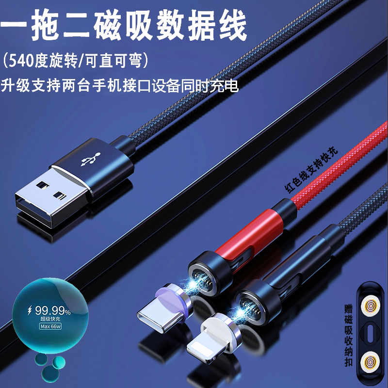 Huawei, honor, apple, магнитный крутящийся совместимый сильный магнит, iPhone12, зарядный кабель, быстрый универсальный мобильный телефон с зарядкой, 66W, 540 градусов, андроид, 2 в 1