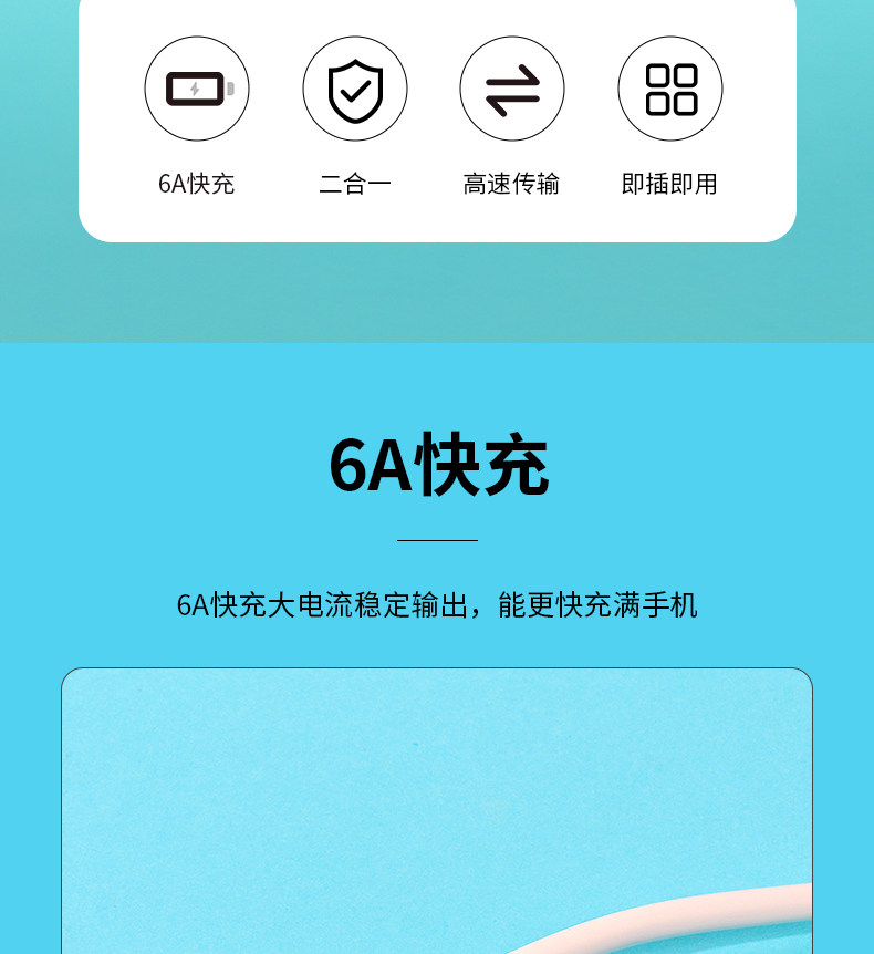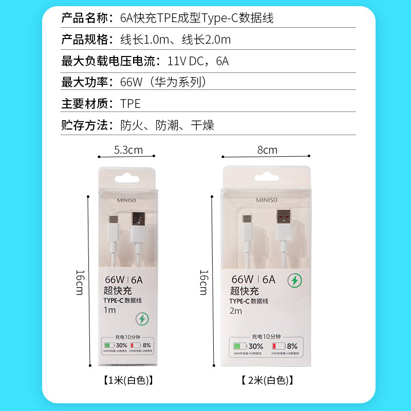 Miniso, универсальный мобильный телефон, зарядный кабель, 6A, андроид