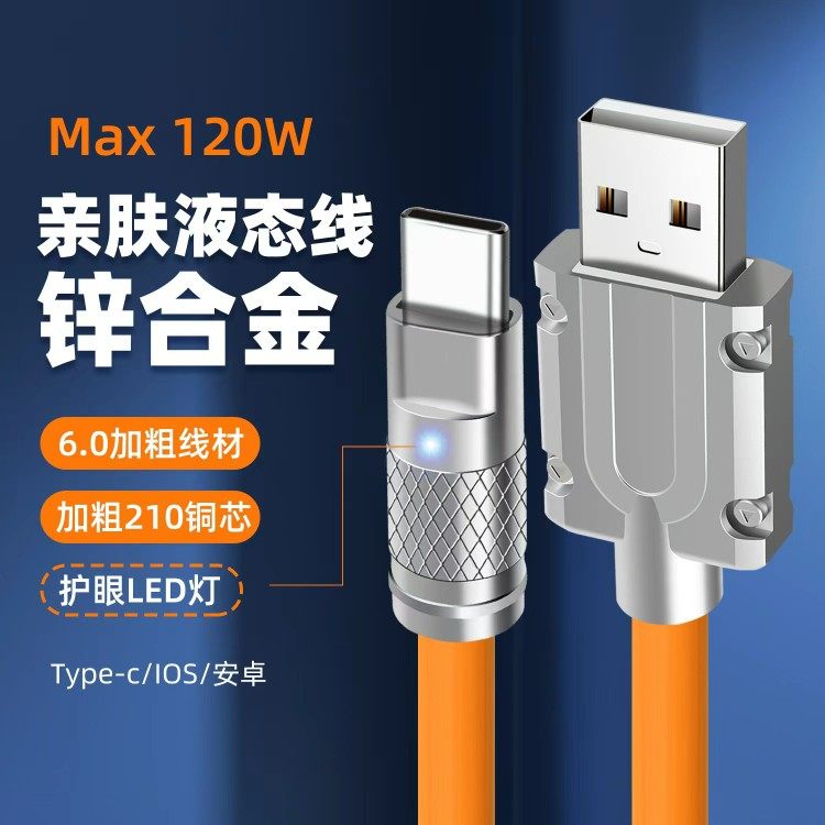 Apple, силиконовый мобильный телефон, зарядный кабель, 120W, Android 6, 6A