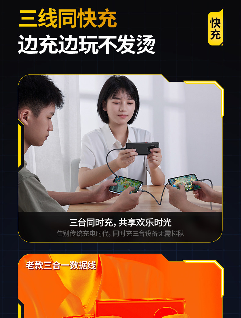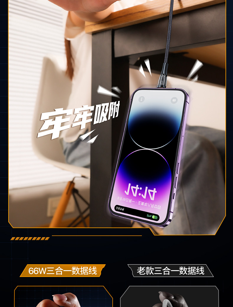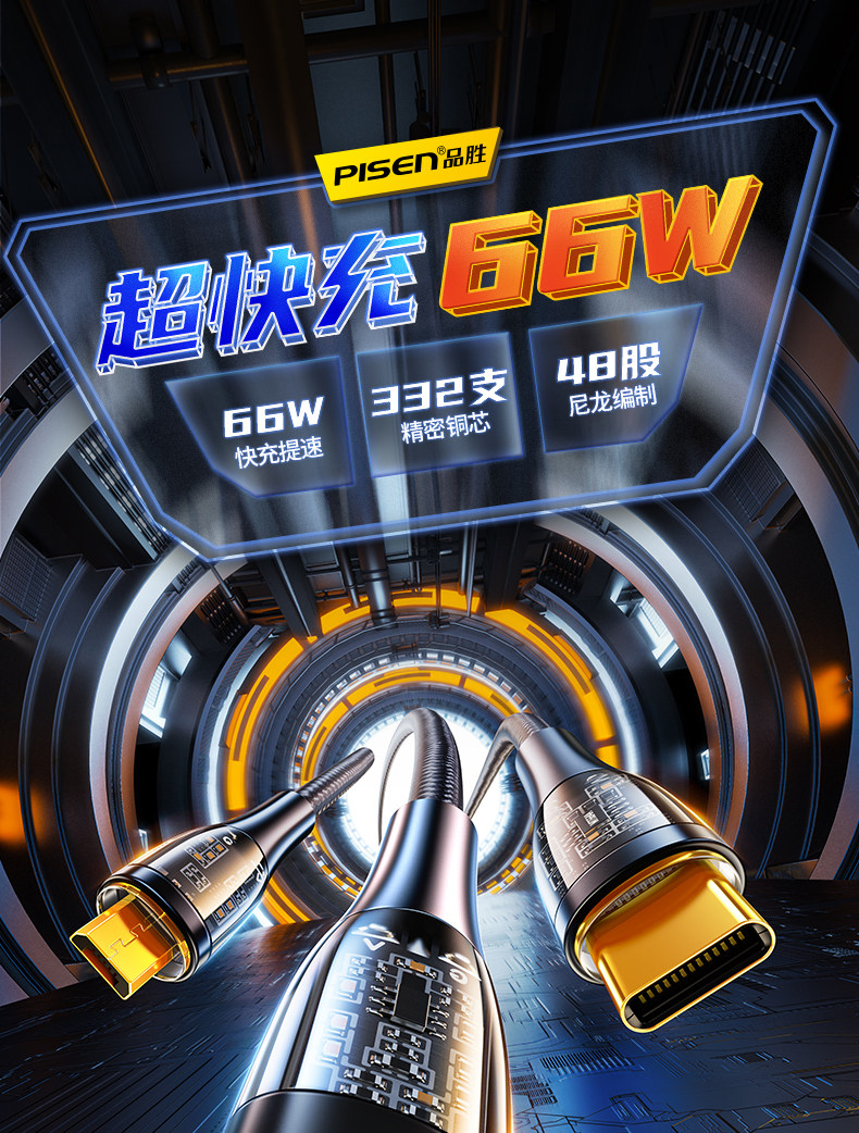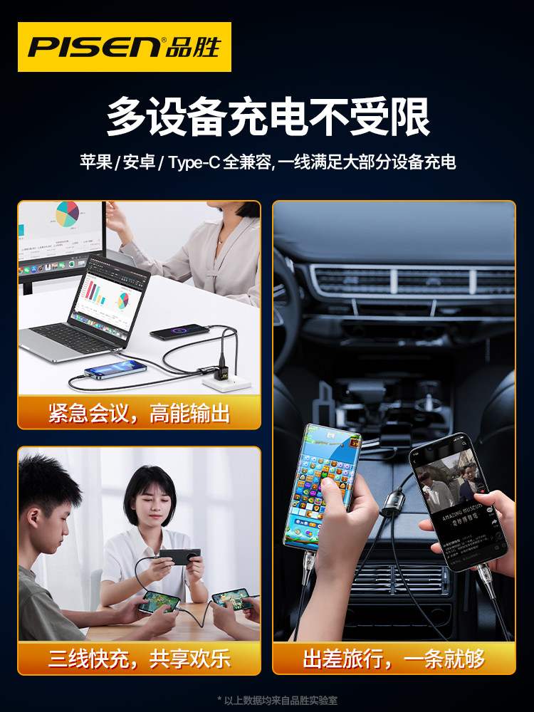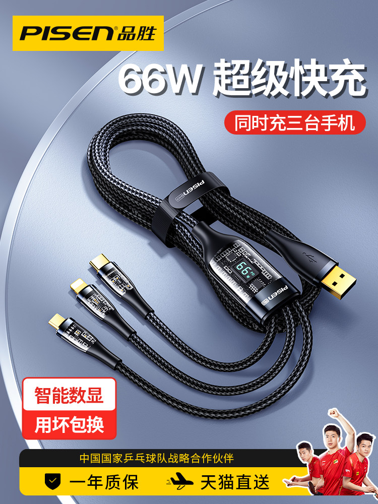 品胜 Apple, huawei, oppo, совместимый мобильный телефон, универсальный зарядный кабель, андроид, 6A, быстрая зарядка 66W, «три в одном»