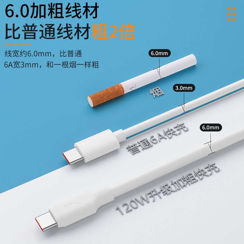 [120W Super Fast Fastging] Жирный кабель данных Type-C 6A Fast Charging Tpyec, применимый к Huawei P20p30p40mate Honor nova7 Android iPhone14 Apple PD Зарядка