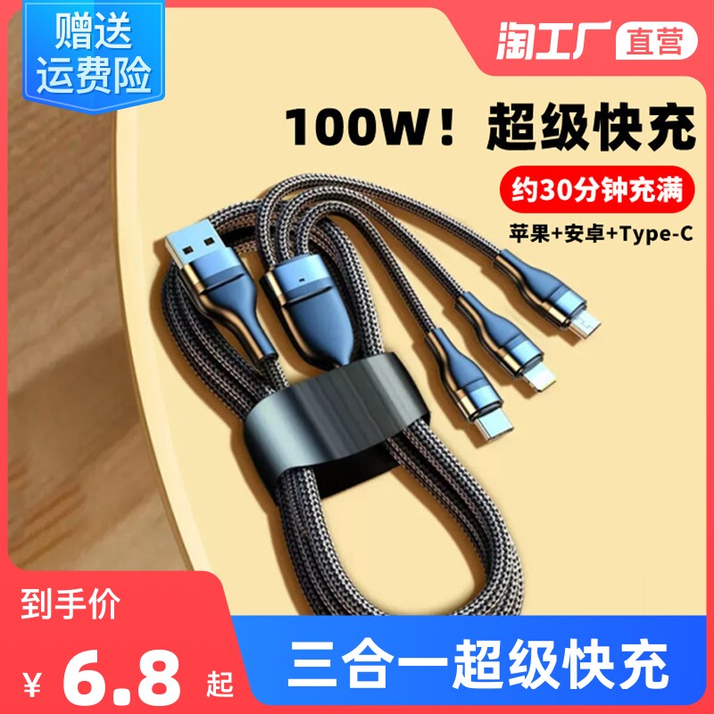 Apple, huawei, мобильный телефон, совместимый зарядный кабель, 100W, «три в одном», андроид