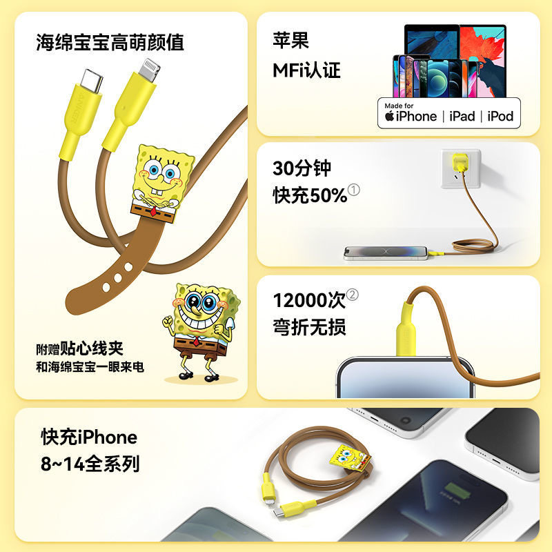 Apple, поролоновый совместимый зарядный кабель, универсальный мобильный телефон, официальный флагманский магазин, iphone, 14promax, 13/12