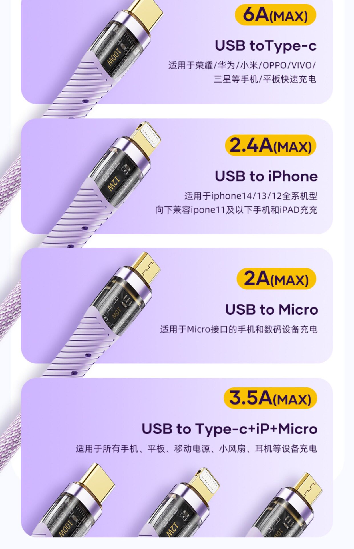 Apple, huawei, xiaomi, совместимый планшетный мобильный телефон, универсальный зарядный кабель, универсальное зарядное устройство, «три в одном», быстрая зарядка 100W, андроид, 6A