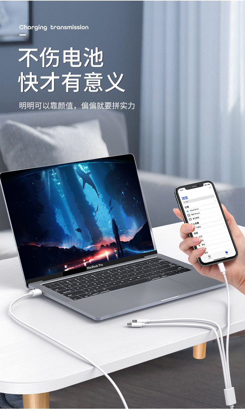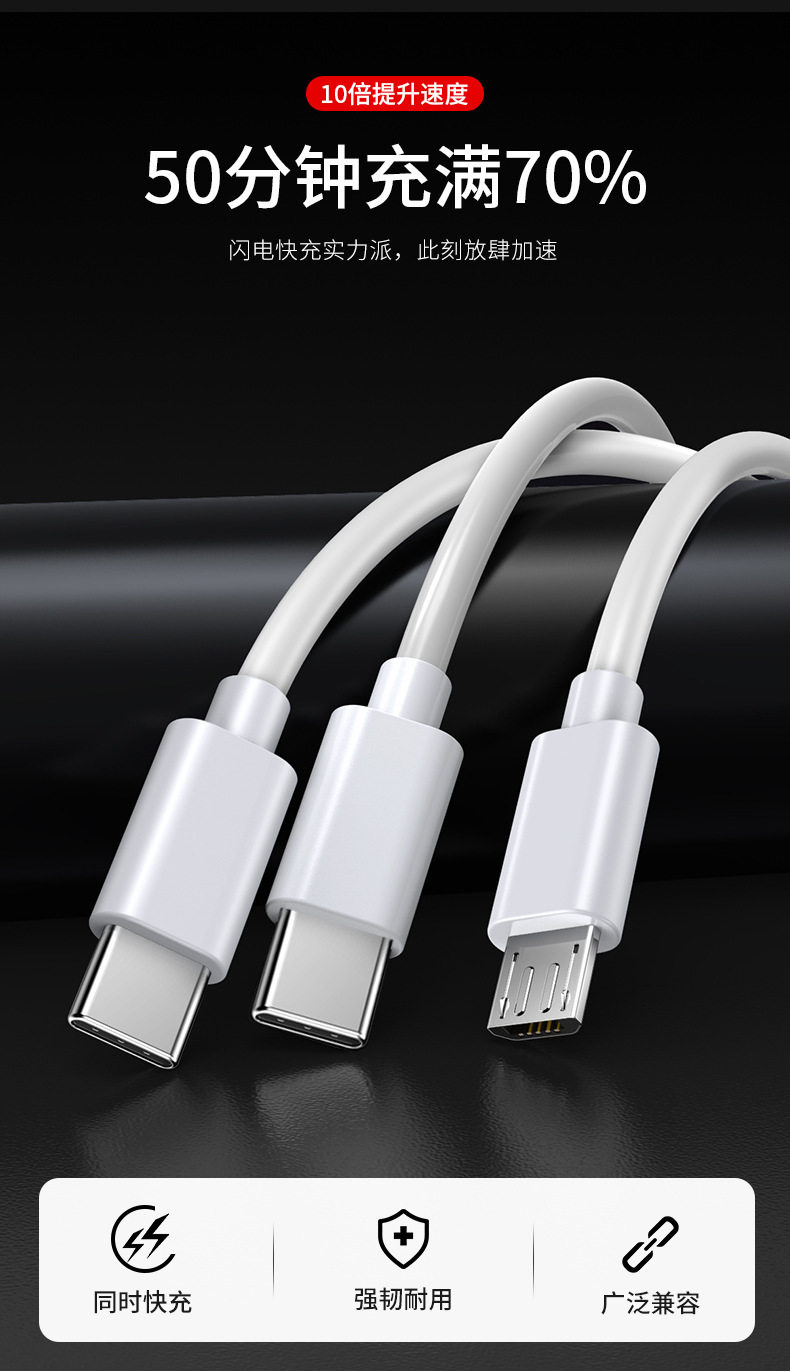 Зарядка кабеля Fast Зарядка Three -in -One Trag Charger One Trag Thry USB Android Typec Data Cable Micro USB