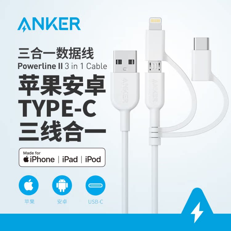 Сертификация Anker ANK MFI SANHE -Один кабельный кабель данных быстрого зарядки Универсальный зарядный кабель для удобного подключения к быстрой зарядке