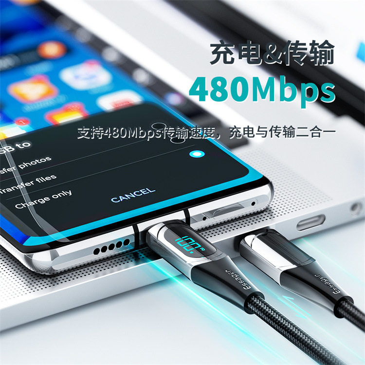 Кабель для передачи данных ESSAGER Type C для цифрового дисплея PD100W, 5A, сильноточный, для цифрового дисплея Apple, кабель для быстрой зарядки, подходит для зарядки ноутбуков, планшетов и мобильных телефонов