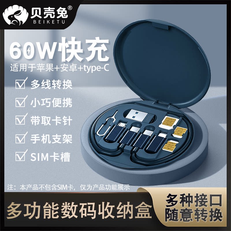 Apple, huawei, xiaomi, универсальный зарядный кабель, коробка для хранения, мобильный телефон, беспроводное совместимое универсальное портативное зарядное устройство, «три в одном», быстрая зарядка 60W