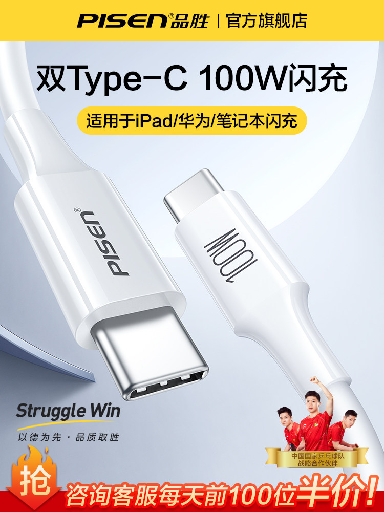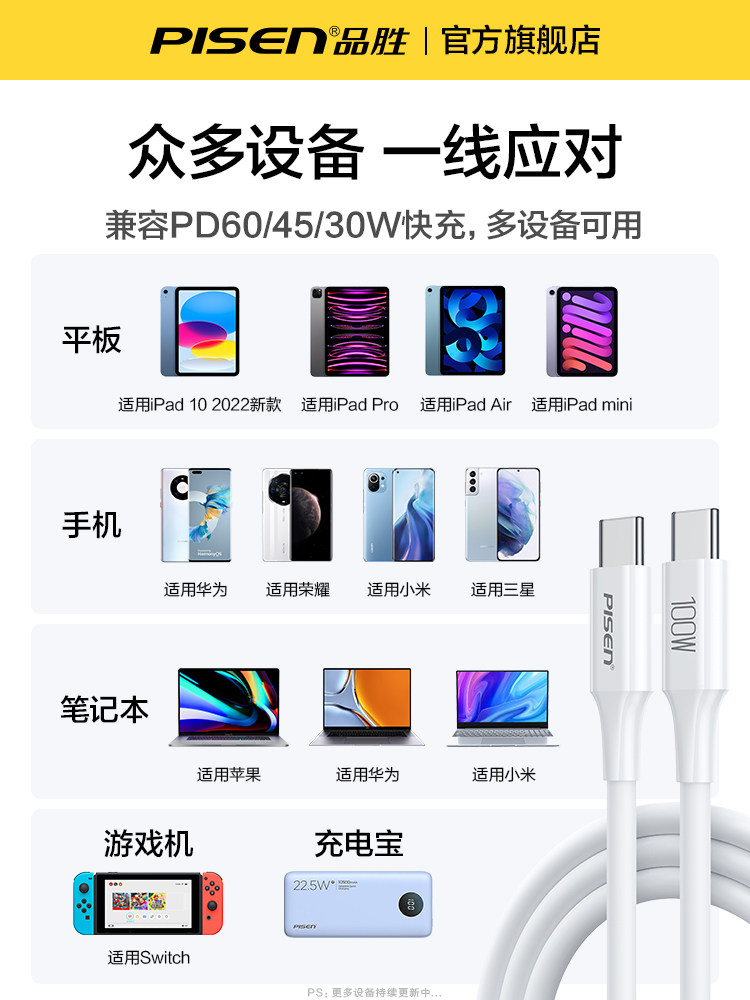 品胜 Двойной кабель данных Typec Data Pd Fast заряжайте iPad для Pro Dual Head Tpyec Cable, зарядное устройство подходящее
