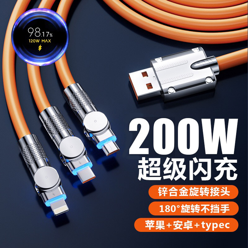Apple, huawei, xiaomi, крутящийся универсальный мобильный телефон, совместимый зарядный кабель, 200W, «три в одном», андроид, iphone