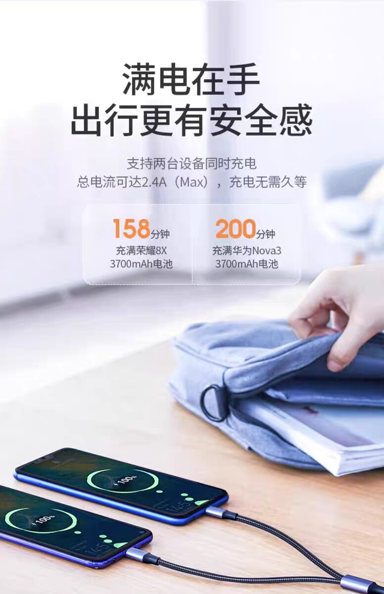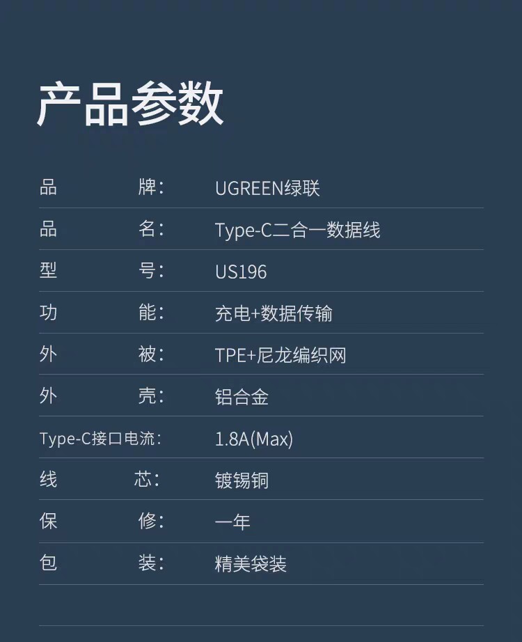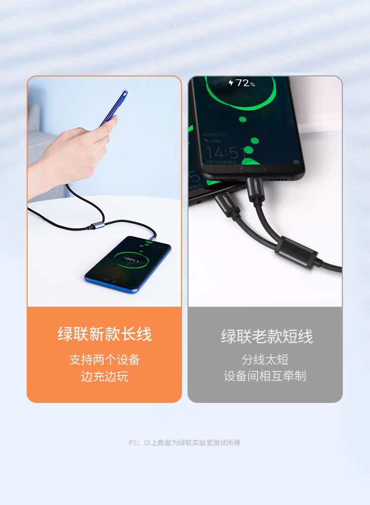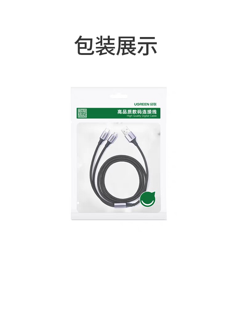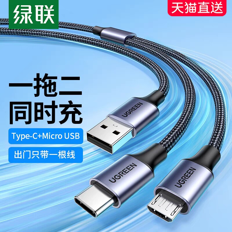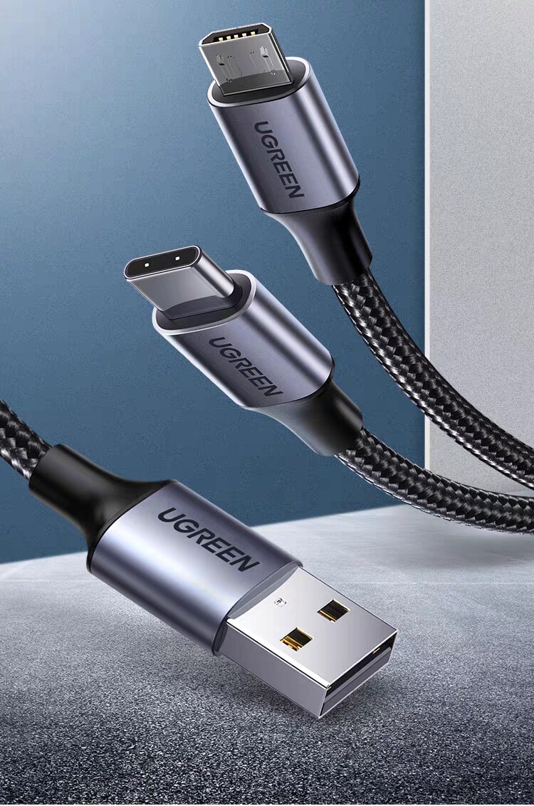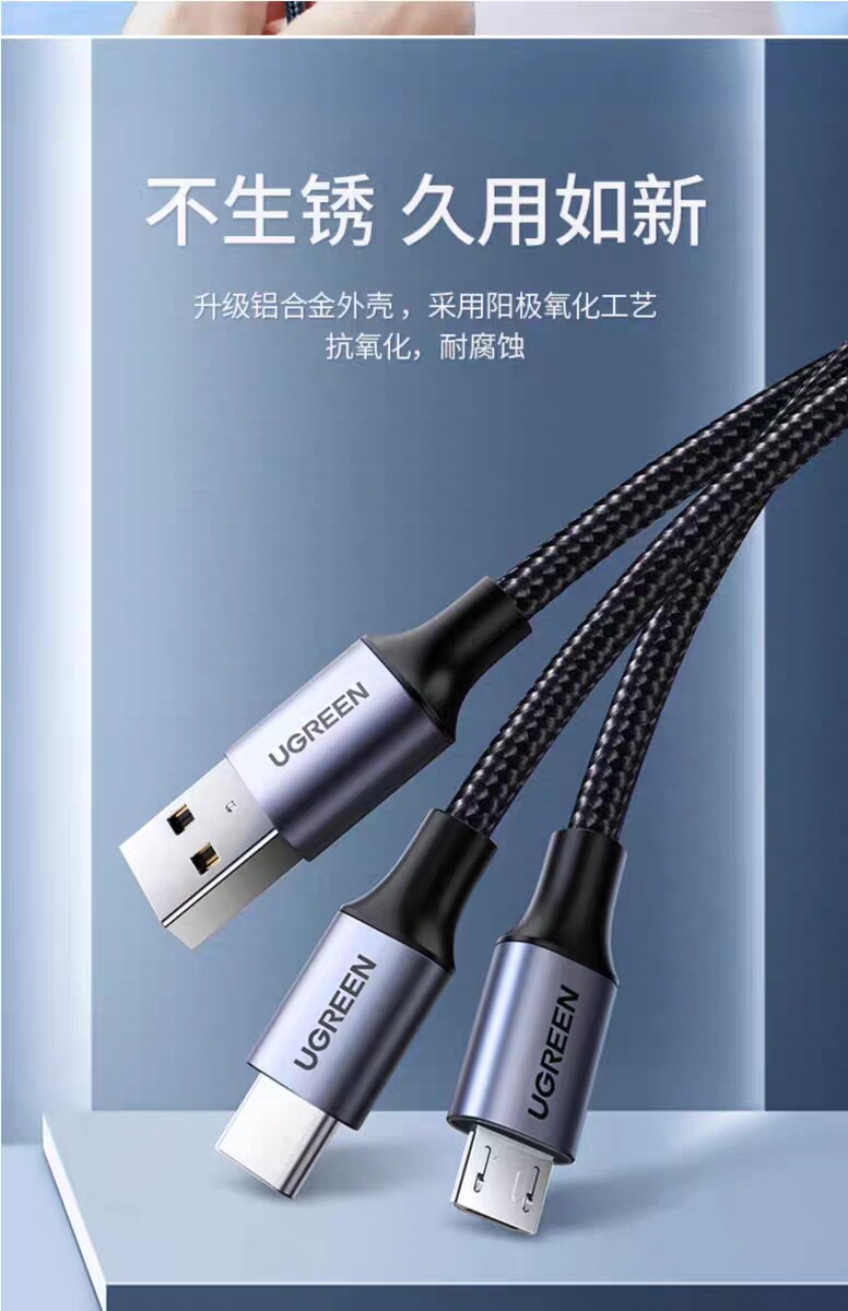 Ugreen Union US196 Два-в-один 1 Перетащите 2 Данные кабель зарядки Android Type-C, выводящий два Microusb Multi-Hayging Multi-Charger Woven Wire 30572 30572