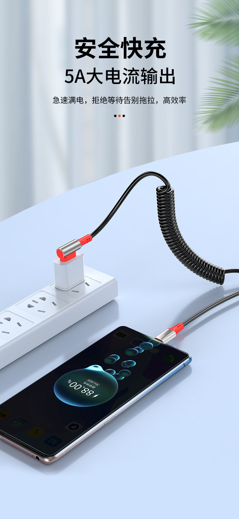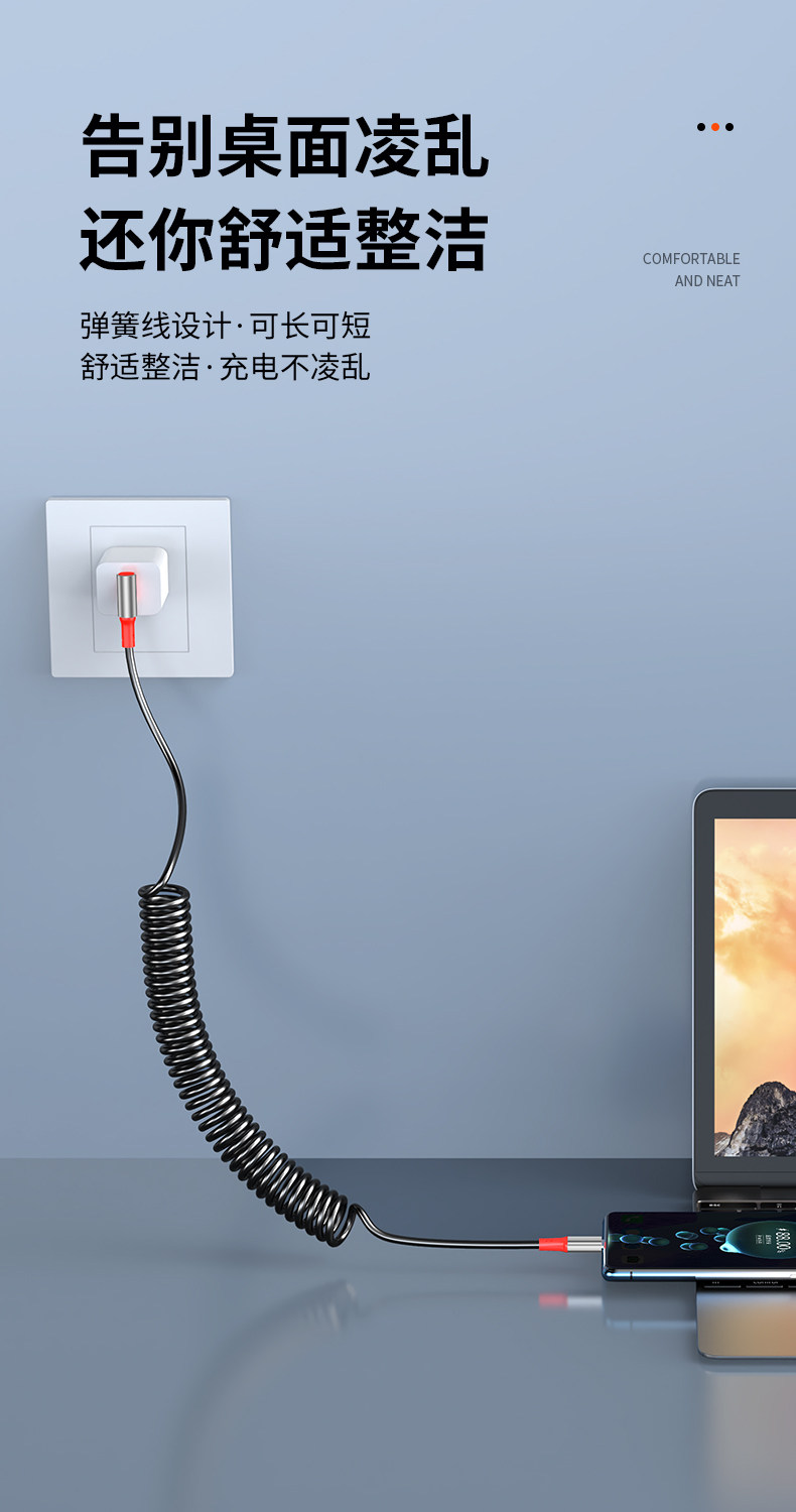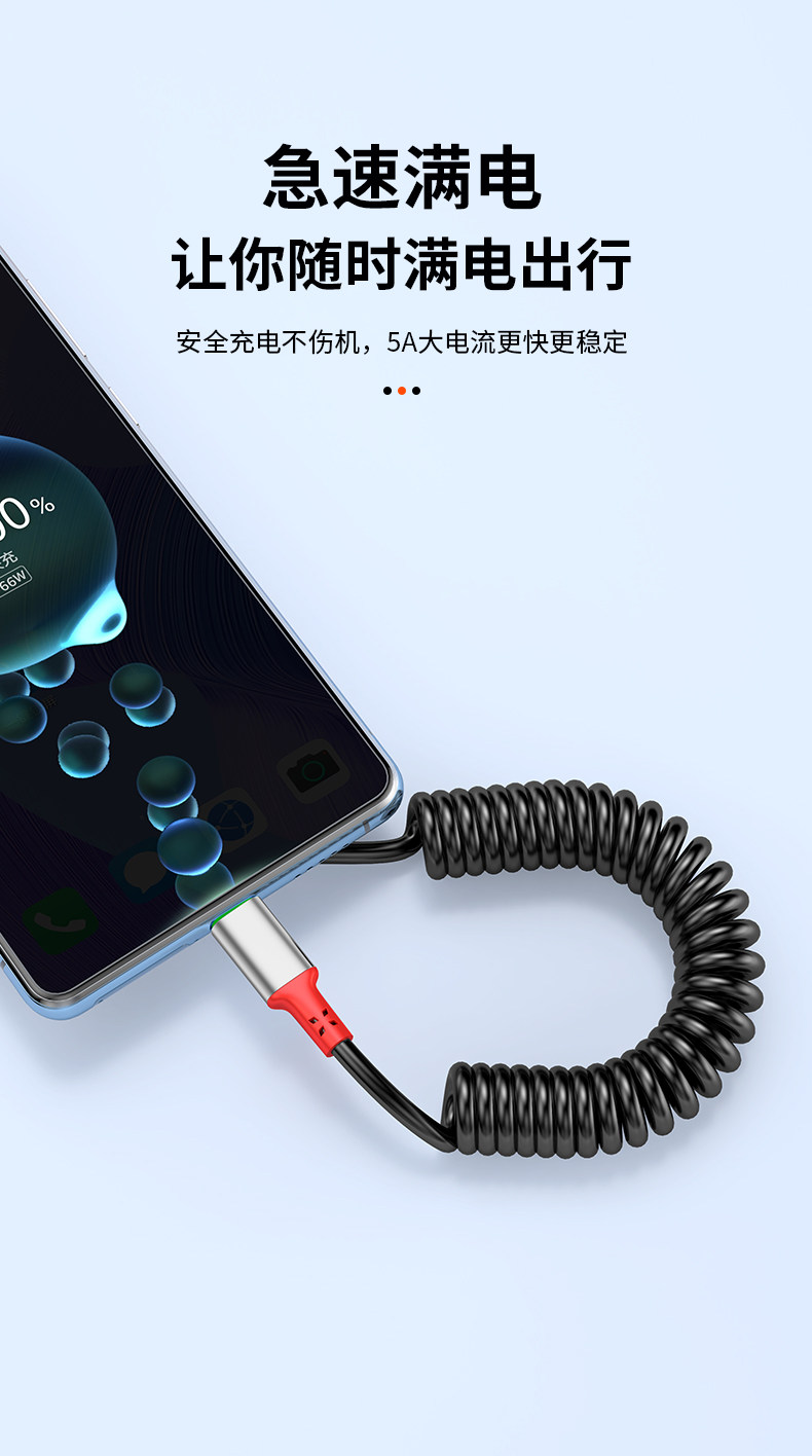66 Вт сверхбыстрая зарядка USB с одним и двойным коленом, 6/5 А, пружинная телескопическая мотоциклетная машина, навигационный кабель для передачи данных Carplay, подходит для зарядного кабеля для Huawei, Apple, iPhone14, Android