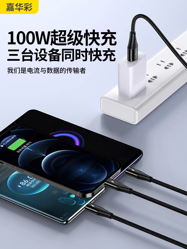 Apple, зарядное устройство, универсальный совместимый мобильный телефон, 100W, 6A, «три в одном», андроид