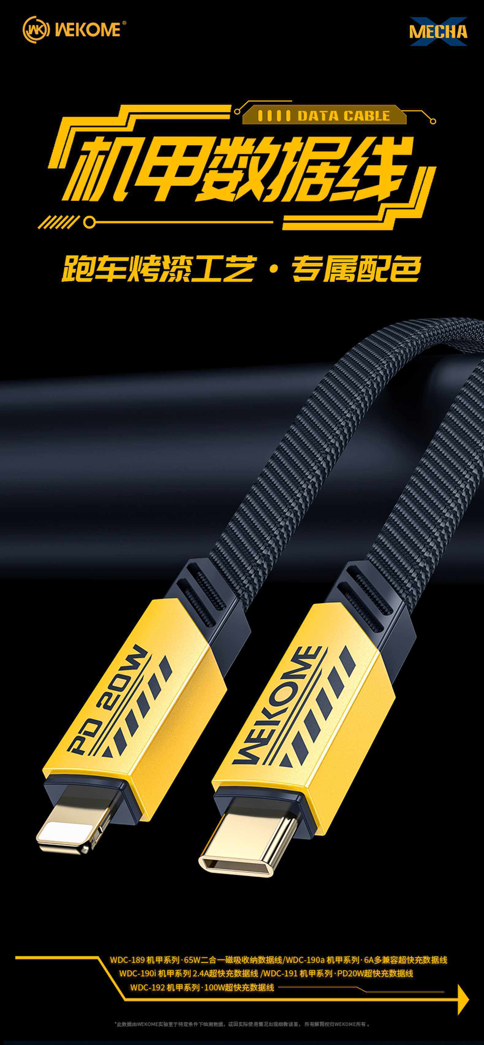 WEKOME Подходит для Apple/Apple TYPE-C mecha 2,4/6A/20/65/100 Вт, сверхбыстрая зарядка без нагрева, мощный плетеный кабель для передачи данных, плоский лапша 189/190/191/192