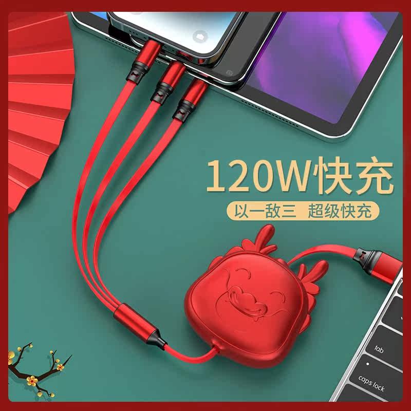 Телескопический зарядный кабель, универсальный мобильный телефон, 120W, делается под заказ, с печатью вашего логотипа, «три в одном», подарок на день рождения, принт