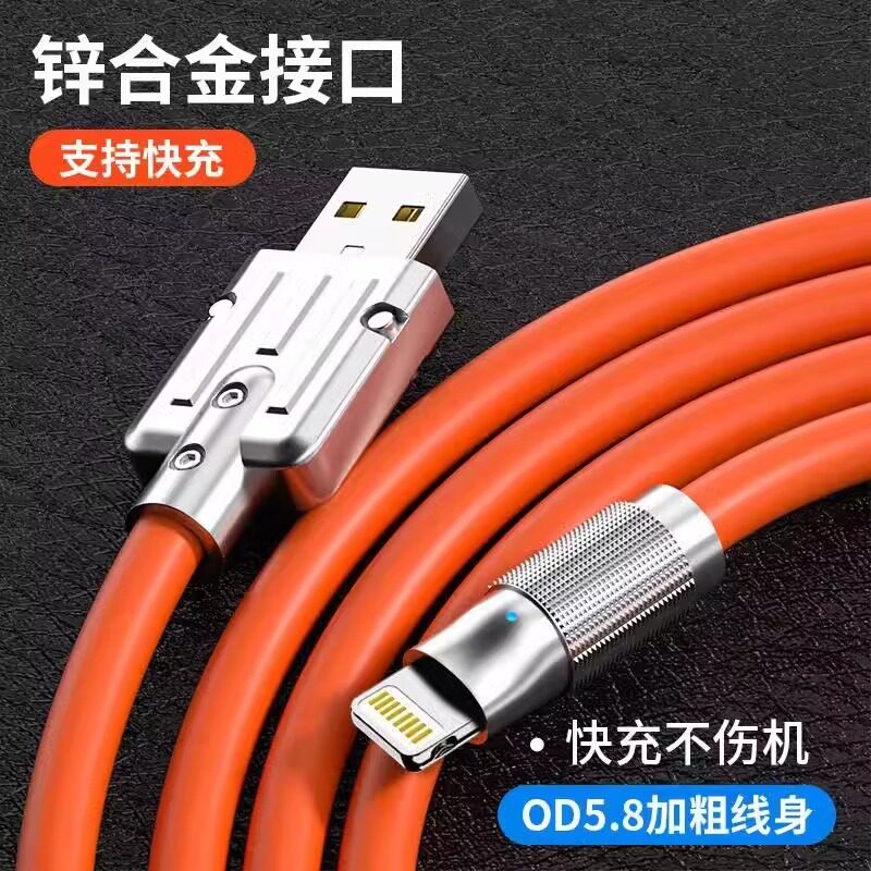 Подходит для Apple, кабель для зарядки, быстрая зарядка, iphone14/13/6s/8p/11pro/12, утолщающий кабель для передачи данных пассажира, интерфейс от одного до трех, оранжевый