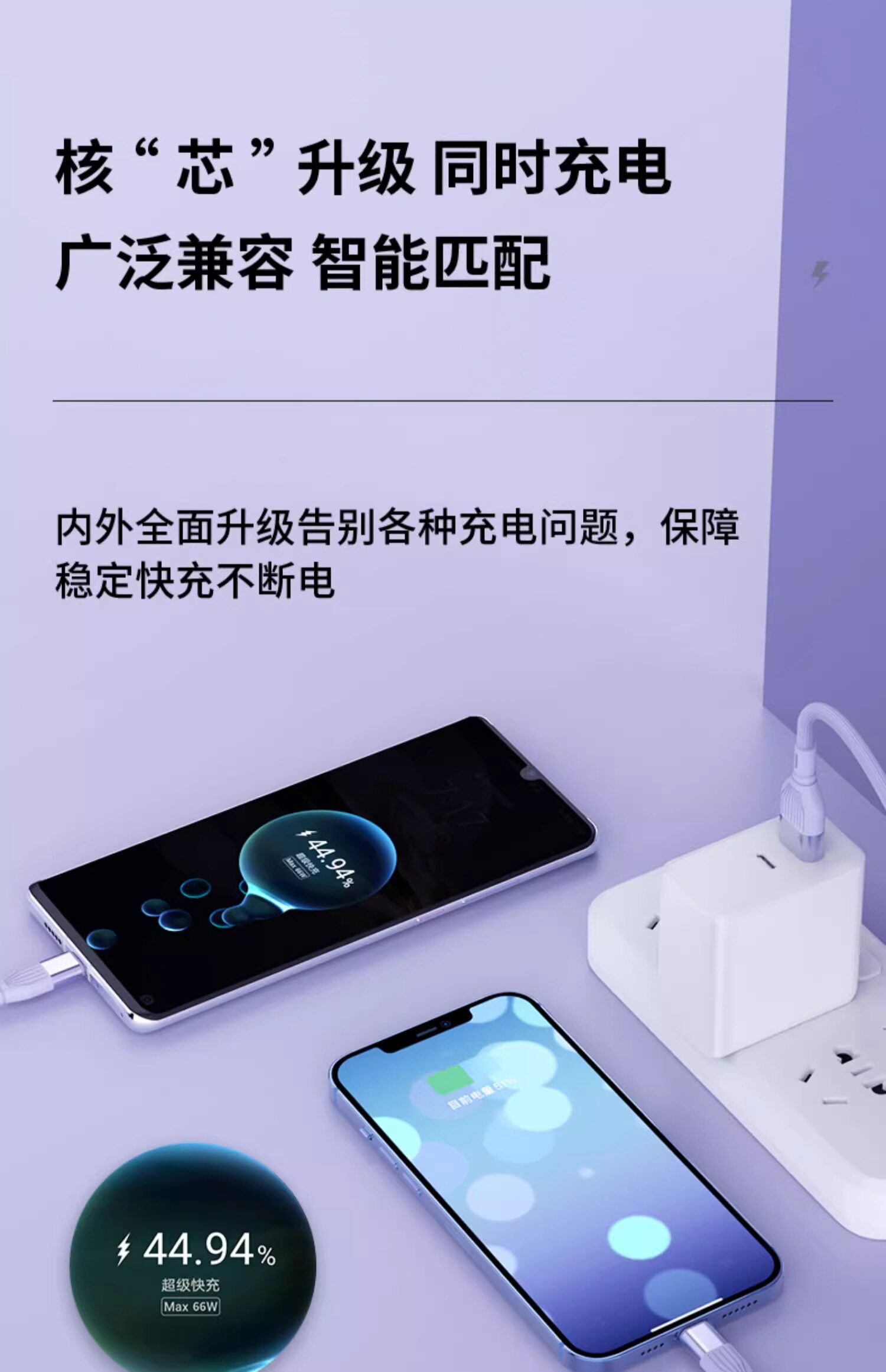 Apple, huawei, xiaomi, iPhone15, совместимый длинный мобильный телефон, зарядное устройство, 2 в 1, 66W, андроид, 6A