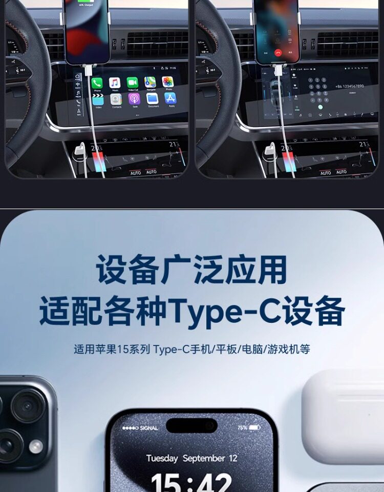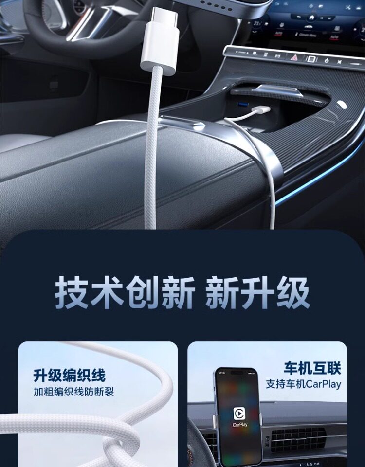 Подходит для автомобиля Apple 15 iPhone16pro max, универсальный плетеный кабель для передачи данных для быстрой зарядки, зарядное устройство для порта USB-typec, автомобильное зарядное устройство, экран навигации CarPlay, расширенная длина: 2 метра, флэш-зарядка - 3 метра.