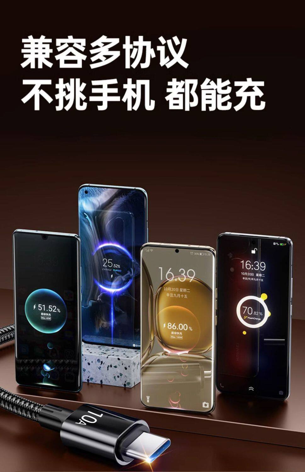 Xiaomi, samsung, huawei, honor, плетеный совместимый мобильный телефон, умный автоматический зарядный кабель, 240W, Android 10, 10A