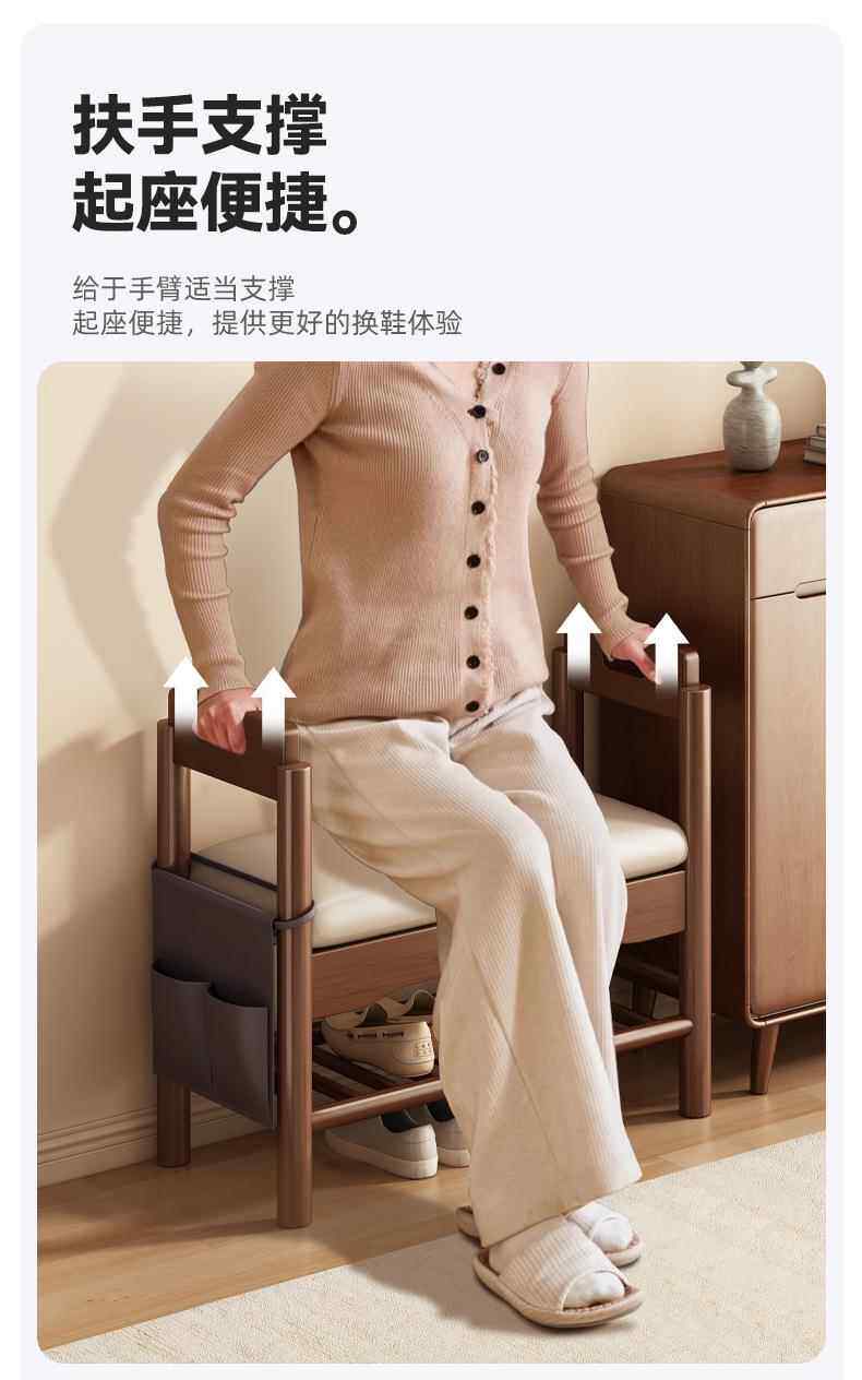 [物实 木 换鞋 凳 门口家用带扶手穿鞋 凳 入户进门可坐鞋 柜 坐 凳 一体玄关 凳 垫床笠]