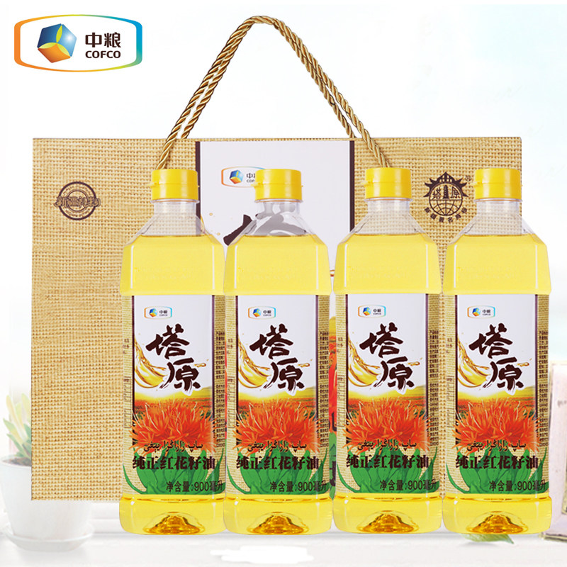 COFCO Pagoda Yuan Sinjiang красного цветочного семянного масла 900mlx4 Подарочная коробка бутылки с физическим раздавливанием Синьцзян