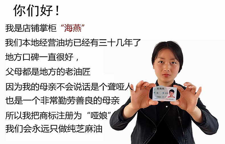 哑娘 Кунжутное масло, 500 мл, физическая защита