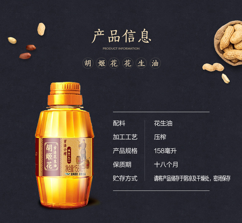 胡姬花 Древнее французское маленькое маленькое арахисовое масло 158 мл небольшого общежития с общежил